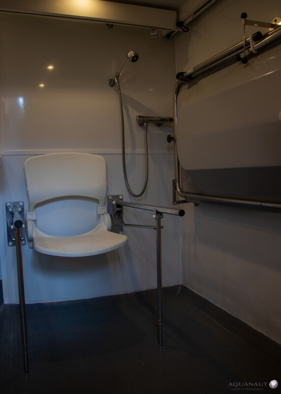 Diese Aquanaut Access 1500 hat fantastische Segeleigenschaften (einschließlich Bug- und Heckstrahlruder), viel Komfort (ein superleiser Motor und eine Klimaanlage unter Deck) und alle Möglichkeiten für Menschen mit Behinderung. Extras auf diesem Schiff? Alles ist ebenerdig, Aufzüge, Hoch-Tief-Küche, Hoch-Tief-Bett und Sonnenkollektoren.