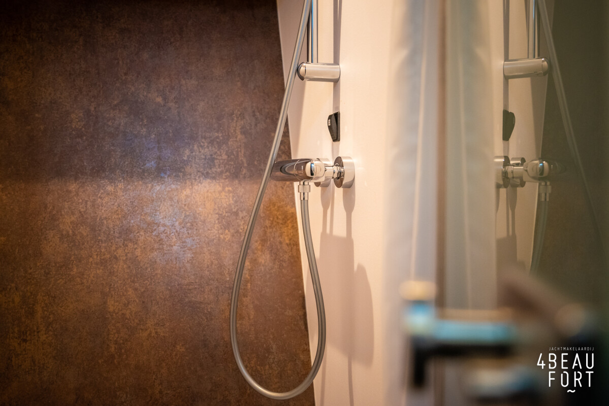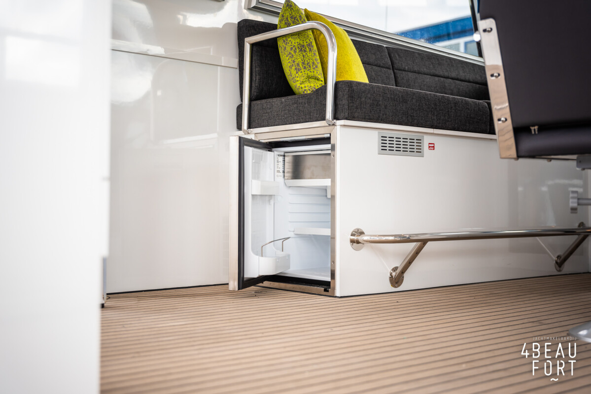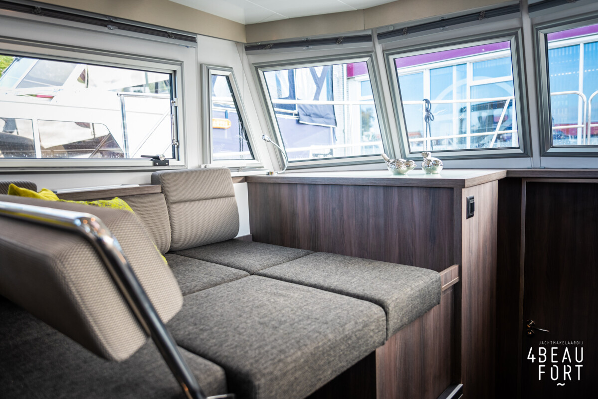 Diese Aquanaut Andante 400 AC PH mit ihren schönen Linien bietet 3 Schlafkabinen, zwei Duschen und zwei Toiletten.