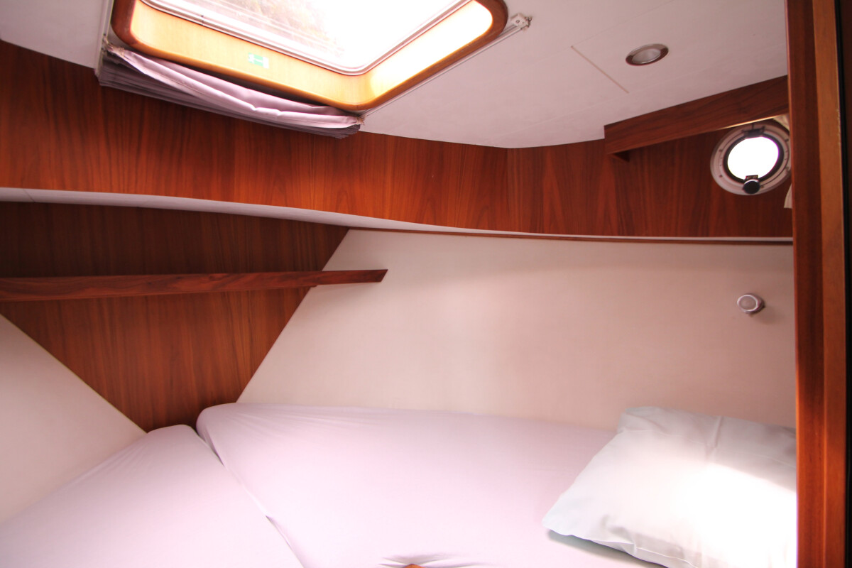 The comfortable handling of this Aquanaut Drifter CS 1000 AK and the beautiful interior make staying on board an unforgettable experience. The two-cabin layout makes this boat suitable for 4 to 6 people. On Odin, the dinette (table in the kitchen) can be lowered to create a double bed.